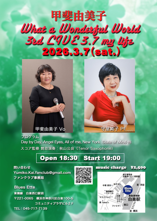 甲斐由美子thirdライブ開催決定!2026年3月7日(土)@横浜白楽Blues Ette